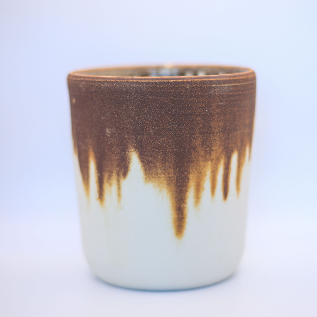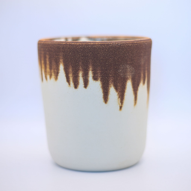 Petit vase de porcelaine blanche, rehaussé d'une fine couche de grès rouge chamottée, et émaillé en transparent à l'intérieur du vase, idéal pour la décoration ou pour un pot de fausse fleurs !