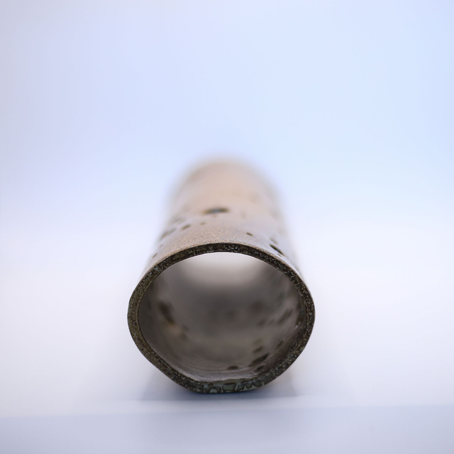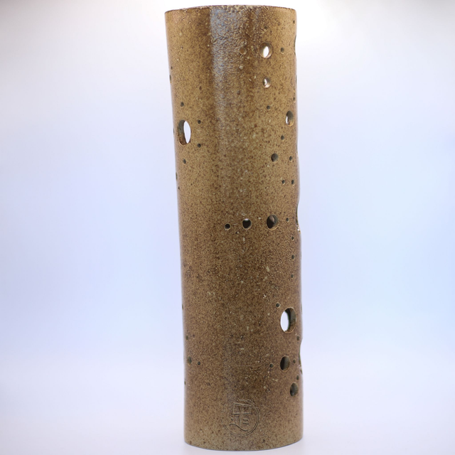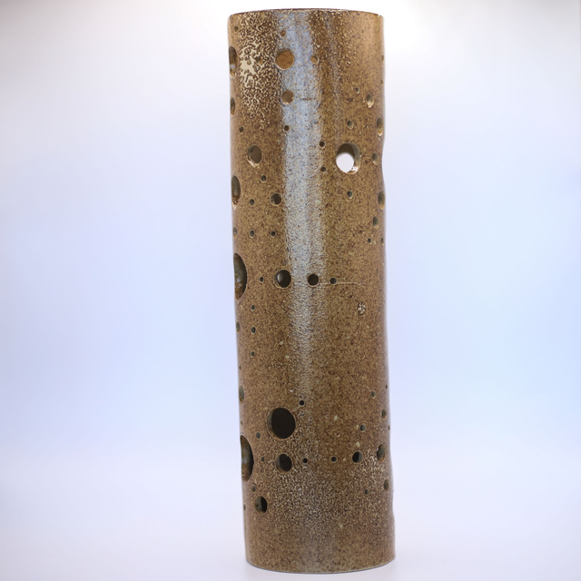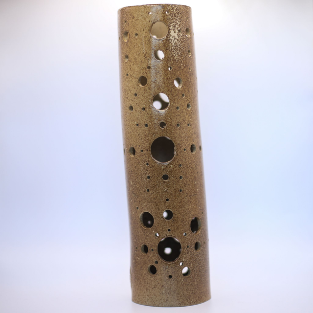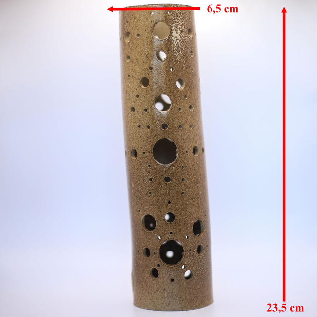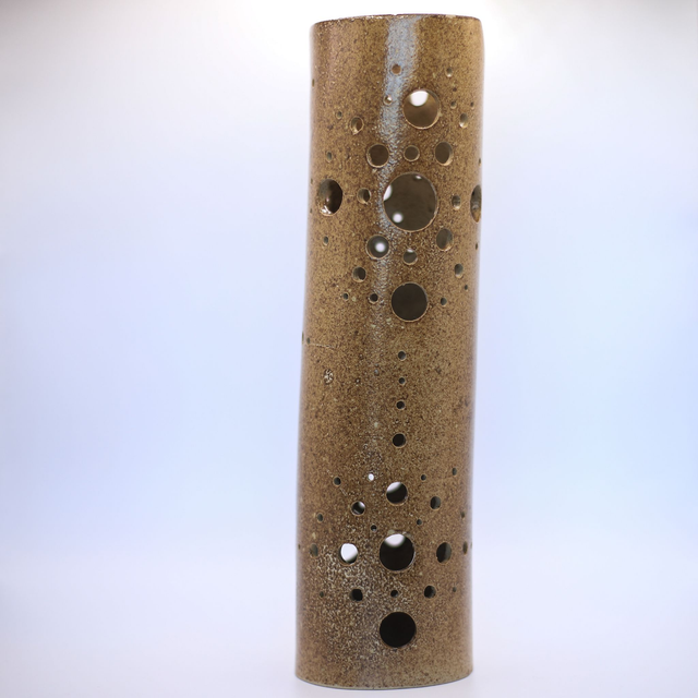 Photophore en grès de Saint-Amand, émaillé en ocre "Antech", conçu pour accueillir vos guirlandes électriques ! Ainsi vous pourrez révéler le potentiel des motifs de la pièce !